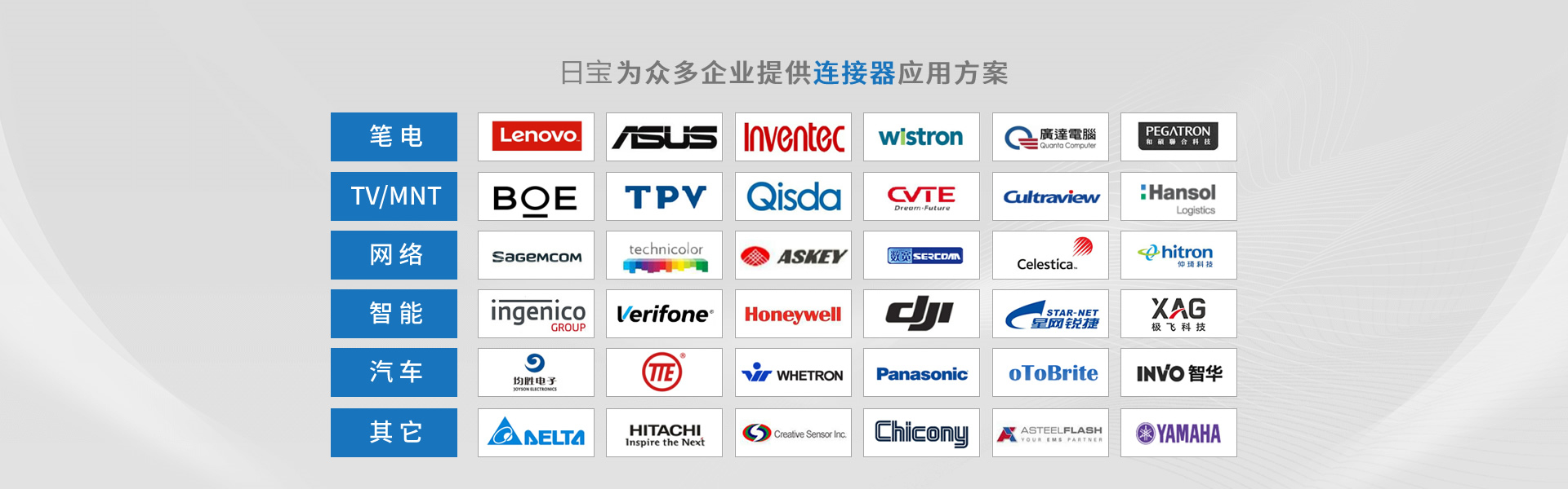 深圳市日寶電子科技有限公司創(chuàng)立于2015年,總部位于蘇州吳江區(qū),總部公司成立于2005年,是一家專業(yè)從事精密連接器設(shè)計(jì)、制造及銷售的高新科技企業(yè)。產(chǎn)品廣泛應(yīng)用于消費(fèi)電子、汽車電子、網(wǎng)絡(luò)通訊及工業(yè)電子設(shè)備、軍工、航天航空、醫(yī)療器械等領(lǐng)域。目前公司產(chǎn)品除本土市場(chǎng)外,更遠(yuǎn)銷歐、美、日等海外市場(chǎng)。 日寶電子注重長(zhǎng)遠(yuǎn)發(fā)展,先后取得ISO9001/14001質(zhì)量與環(huán)境管理體系、IATF16949汽車質(zhì)量管理體系、ISO13485醫(yī)療器械質(zhì)量管理體系、UL,GB/T29490知識(shí)產(chǎn)權(quán)管理體系等認(rèn)證, 并加入HDMI、USB等協(xié)會(huì)。 為提升企業(yè)核心競(jìng)爭(zhēng)力,公司大力推進(jìn)信息化與工業(yè)化的兩化融合建設(shè),先后導(dǎo)入ERP、PLM、CRM、SRM、MES及OA等系統(tǒng)管理軟件,不斷自我提升,為打造新一代智能制造標(biāo)桿企業(yè)不懈努力。 日寶電子擁有業(yè)界專業(yè)的電氣與機(jī)構(gòu)研發(fā)技術(shù)團(tuán)隊(duì),相繼獲得260余項(xiàng)發(fā)明和實(shí)用新型專利,在這日新月異的科技時(shí)代,堅(jiān)持以技術(shù)創(chuàng)新為導(dǎo)向,深度服務(wù)客戶...